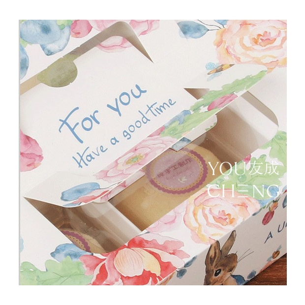 花花世界四入裝禮盒|心意小禮盒,插畫風蛋黃酥禮盒|手提蛋黃酥盒|中秋禮盒包裝、伴手禮禮盒、精巧蛋黃酥禮盒